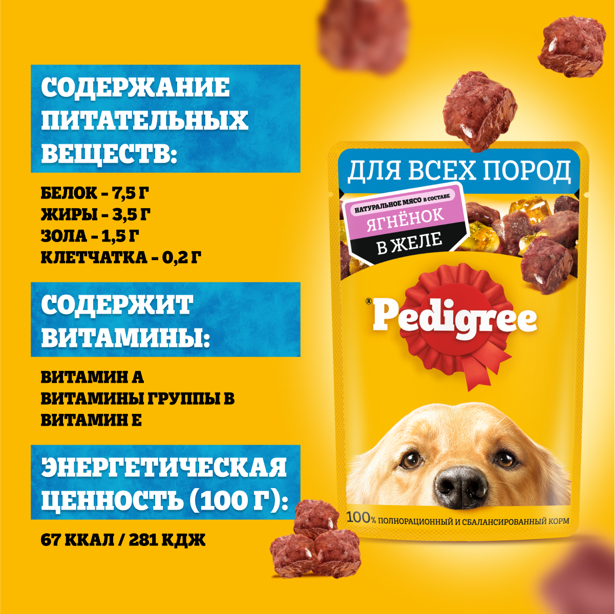 Корм консервированный для взрослых собак PEDIGREE желе с ягненком, для всех пород, 85г