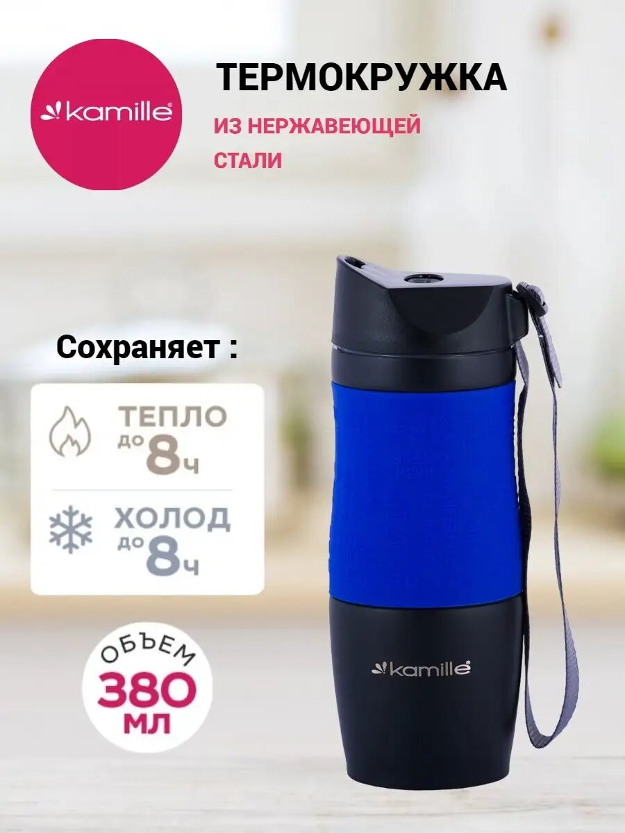 СохранитьТермокружка Kamille с TPR-вставкой и ремешком (синяя) 380 мл (2052A) интересное: