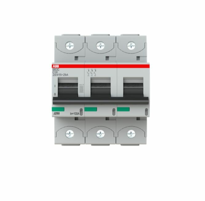 S803C C100 автоматический выключатель 3-полюсный 100Ампер, 25кА (хар-ка C) ABB, 2CCS883001R0824