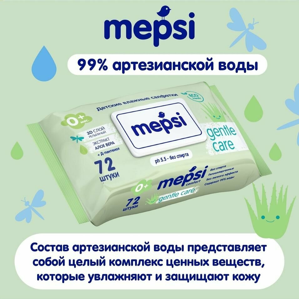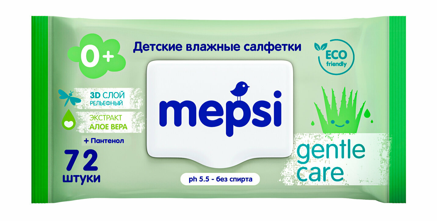 Салфетки влажные детские мепси 72 шт алоэ вера