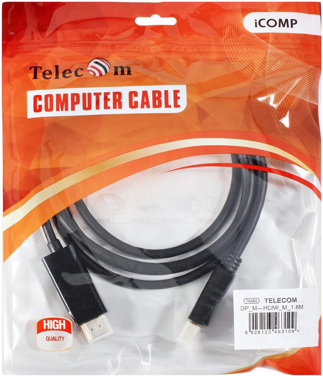 Telecom Кабель-переходник TA494 DisplayPort M-> HDMI M 1.8m 6926123463109