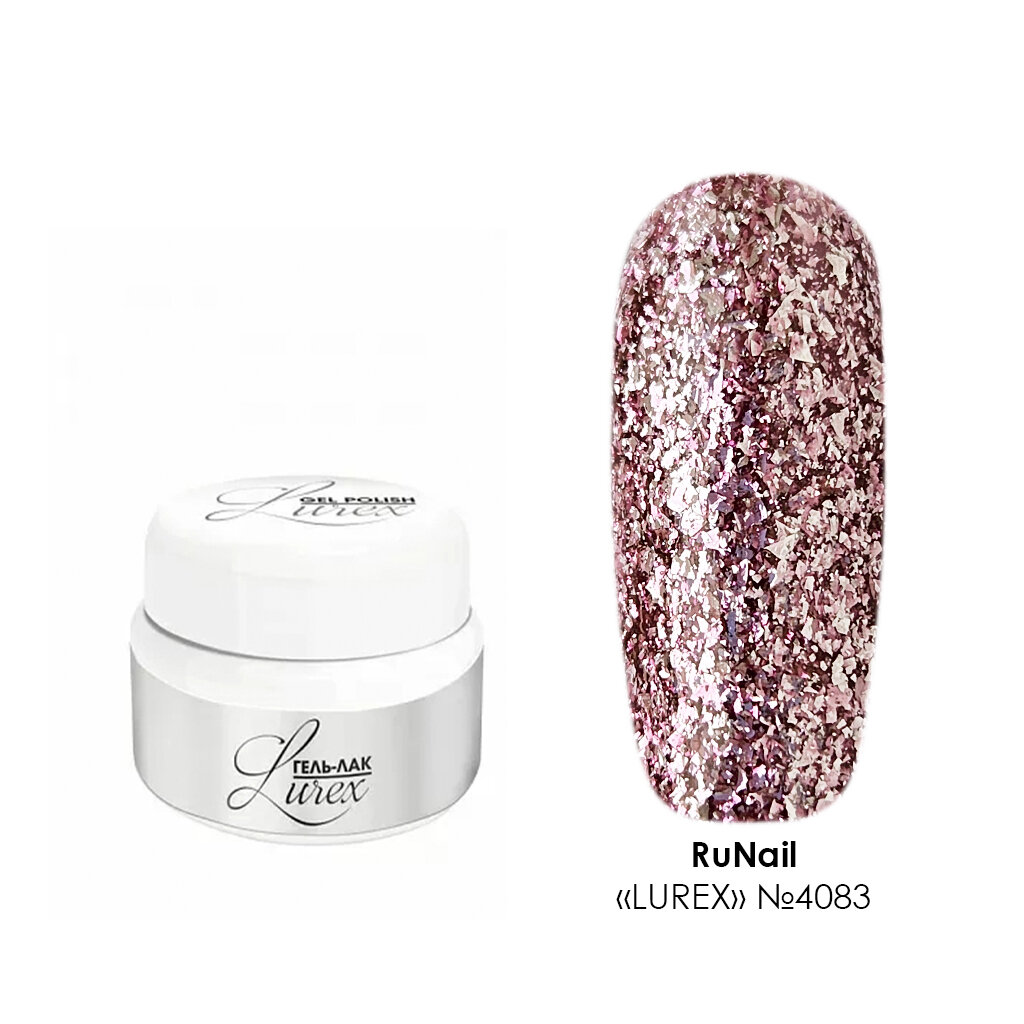 RuNail, Lurex - гель-лак с глиттерными блестками №4083, 5 гр