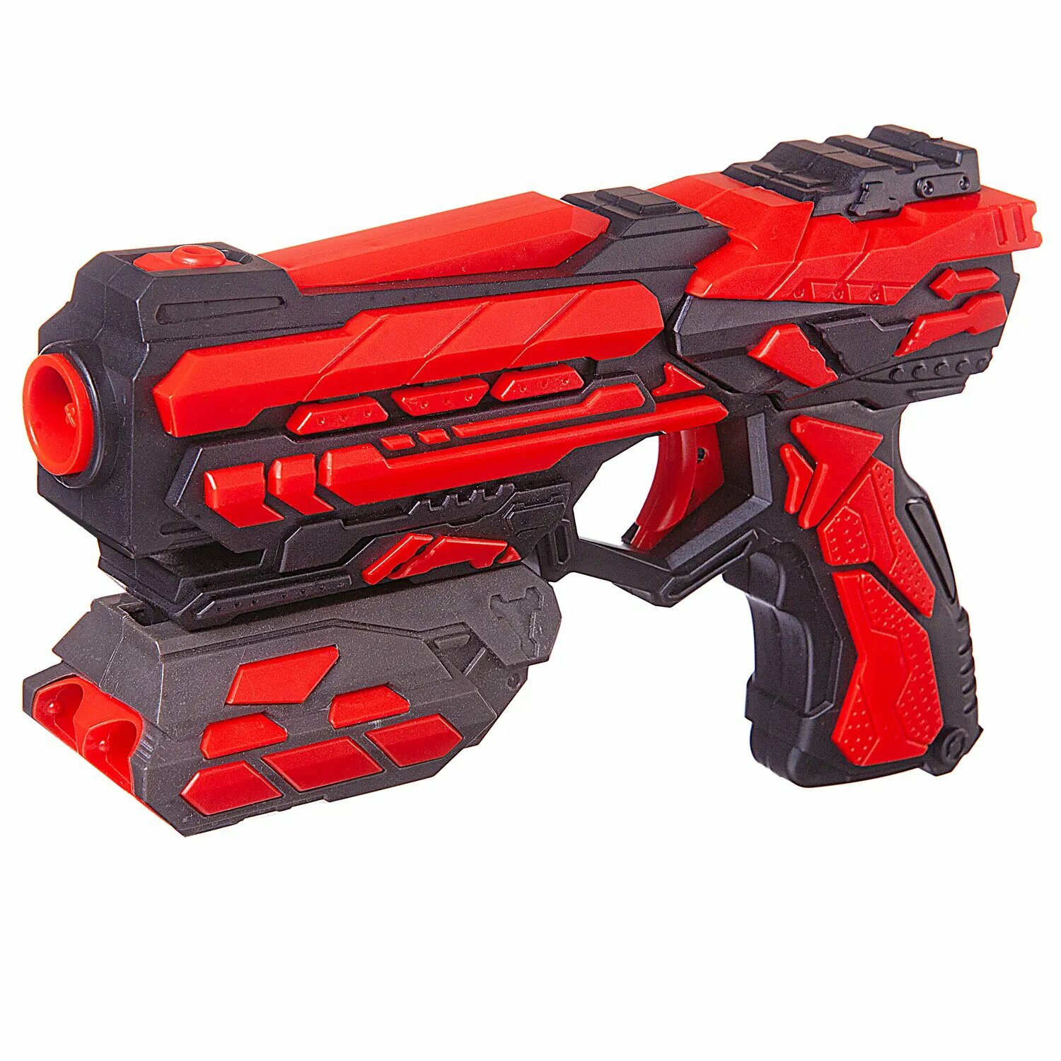 Мегабластер Бластер красно-черный с 14 мягкими пулями, в коробке