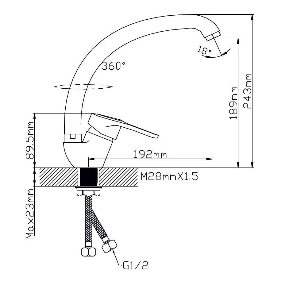 Смеситель д/кухни, 1-ручк, итал к40, гранит, высок поворот излив, крепл гайка,Potato(Китай), P5925-8