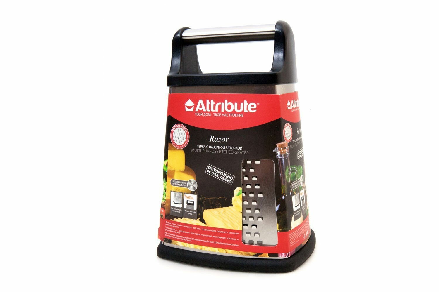 Терка ATTRIBUTE Razor 4-х гранная универсальная без поддона нерж.сталь, пластик интересное: