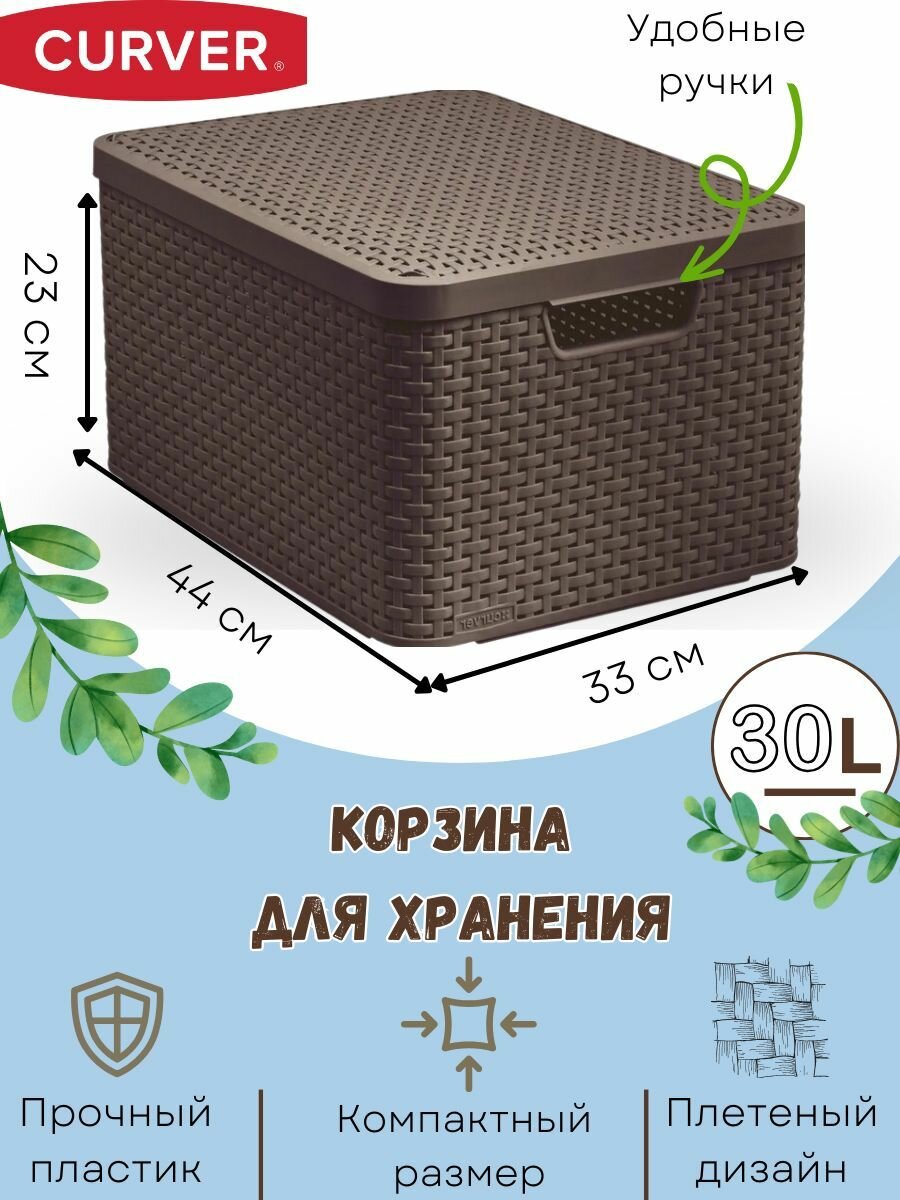 Купить Корзинка L с крышкой Curver Style 30л 445*330*248 темно-коричневый (205861) .