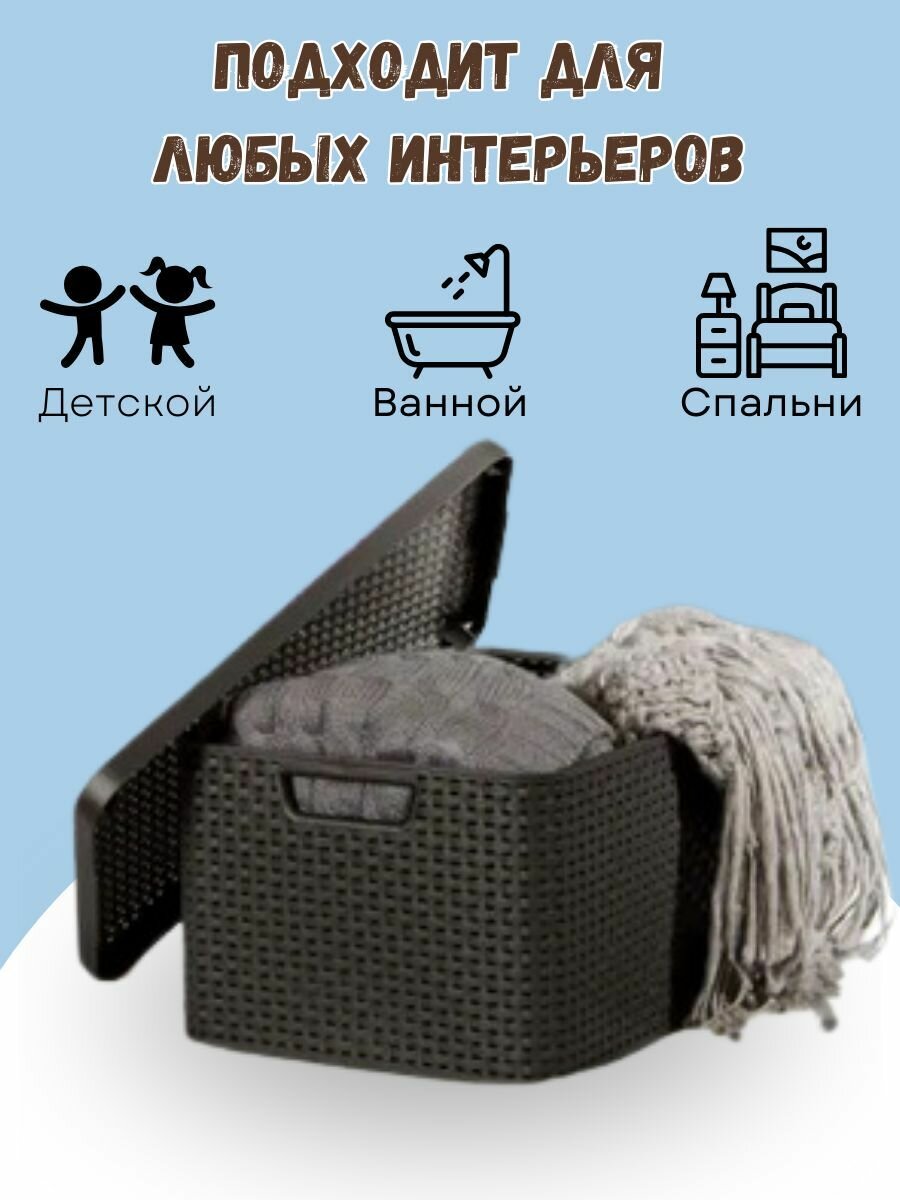 Корзина RATTAN STYLE BOX L 30л+крышка тёмно-коричневая
