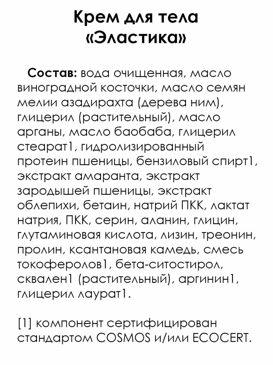 | Отзыв: | Крем для тела "Эластика" из мастерской Олеси Мустаевой - отличный продукт для профилактики растяжек. Имеет прекрасный натуральный состав, не тестируется на животных. Хорошо увлажняет, очень довольна покупкой) |