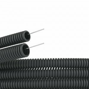Труба ПНД гибкая гофр. д.16мм, лёгкая с протяжкой, 100м, цвет чёрный (упак. 100м) | код. 71716 | DKC (упак.100 м.)