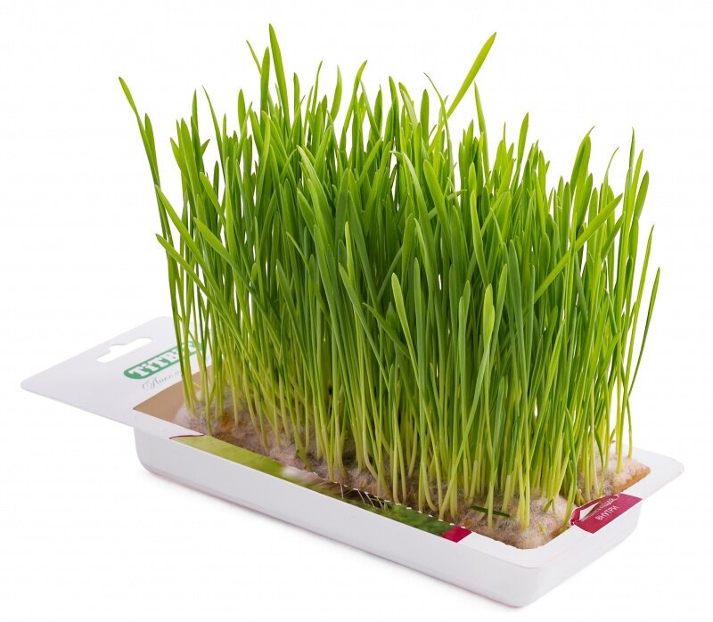 | Плюсы: | Очень хорошо прорастает, легка в выращивании. Нет грязи, если кот перевернет лоток при поедании травы. |