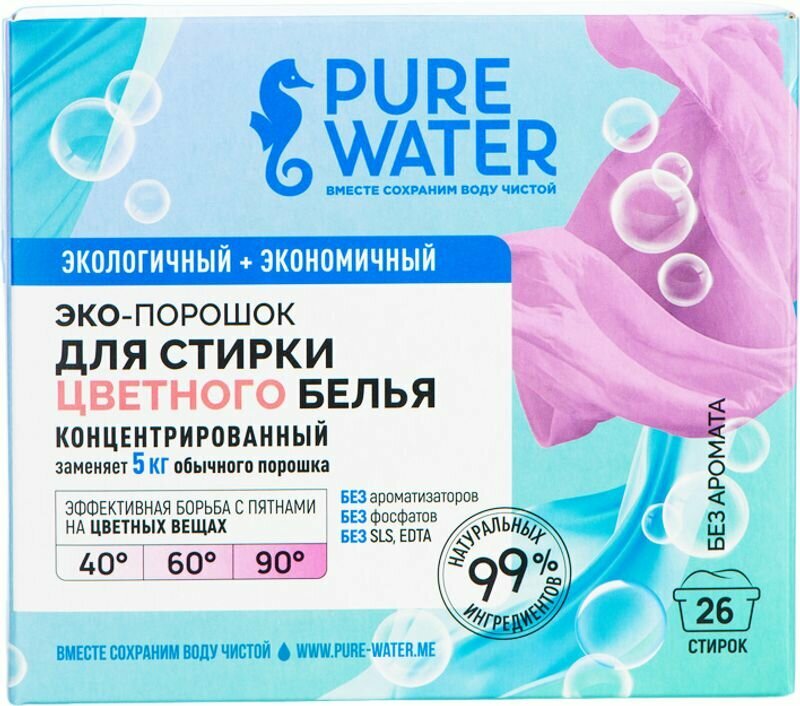 PURE WATER Стиральный порошок для цветного белья, 800 гр, PURE WATER