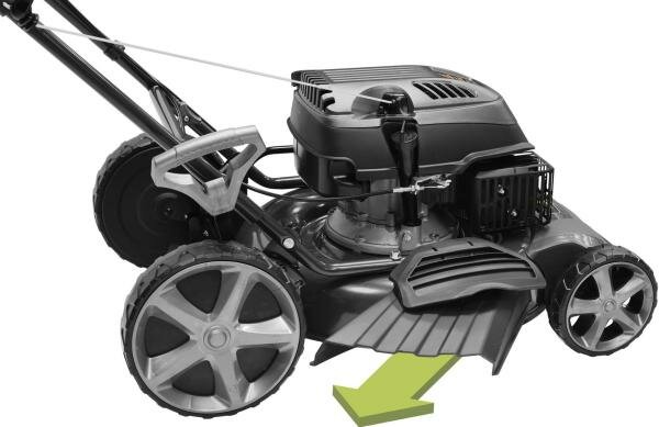 | Дополнительные функции | возможность установки мульчирующей насадки / регулировка высоты скашивания / тормоз двигателя |