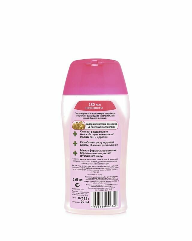 Зоошампунь "нежный" гипоалергенный с хитозаном и аллантоином для котят, 180 мл