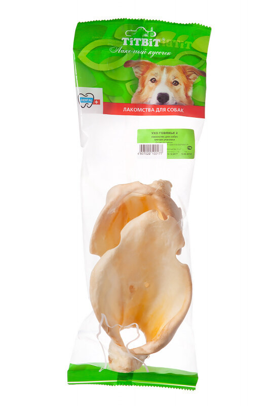 TitBit - ТитБит Ухо говяжье - 2 (мягкая упаковка) 1шт