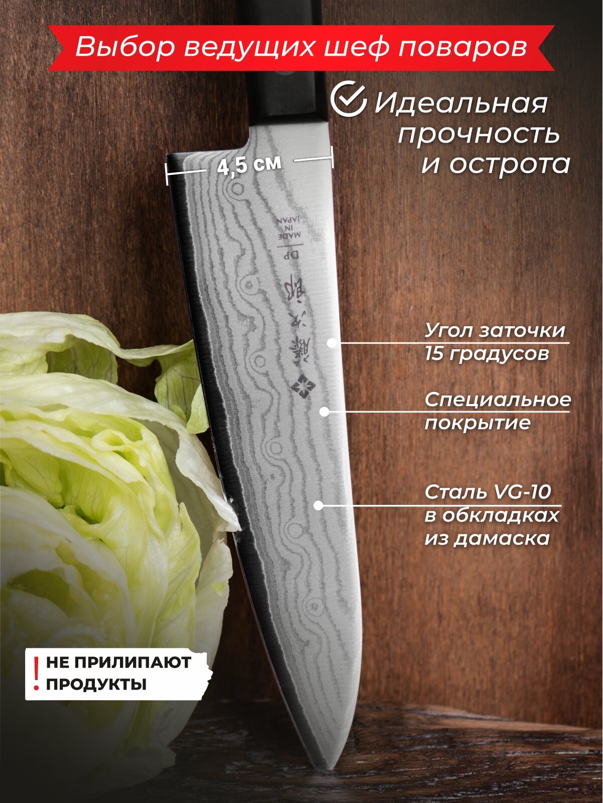 | Плюсы: | Универсальный инструмент, которому под силу любая задача — от нарезки овощей до разделки куриного филе. |