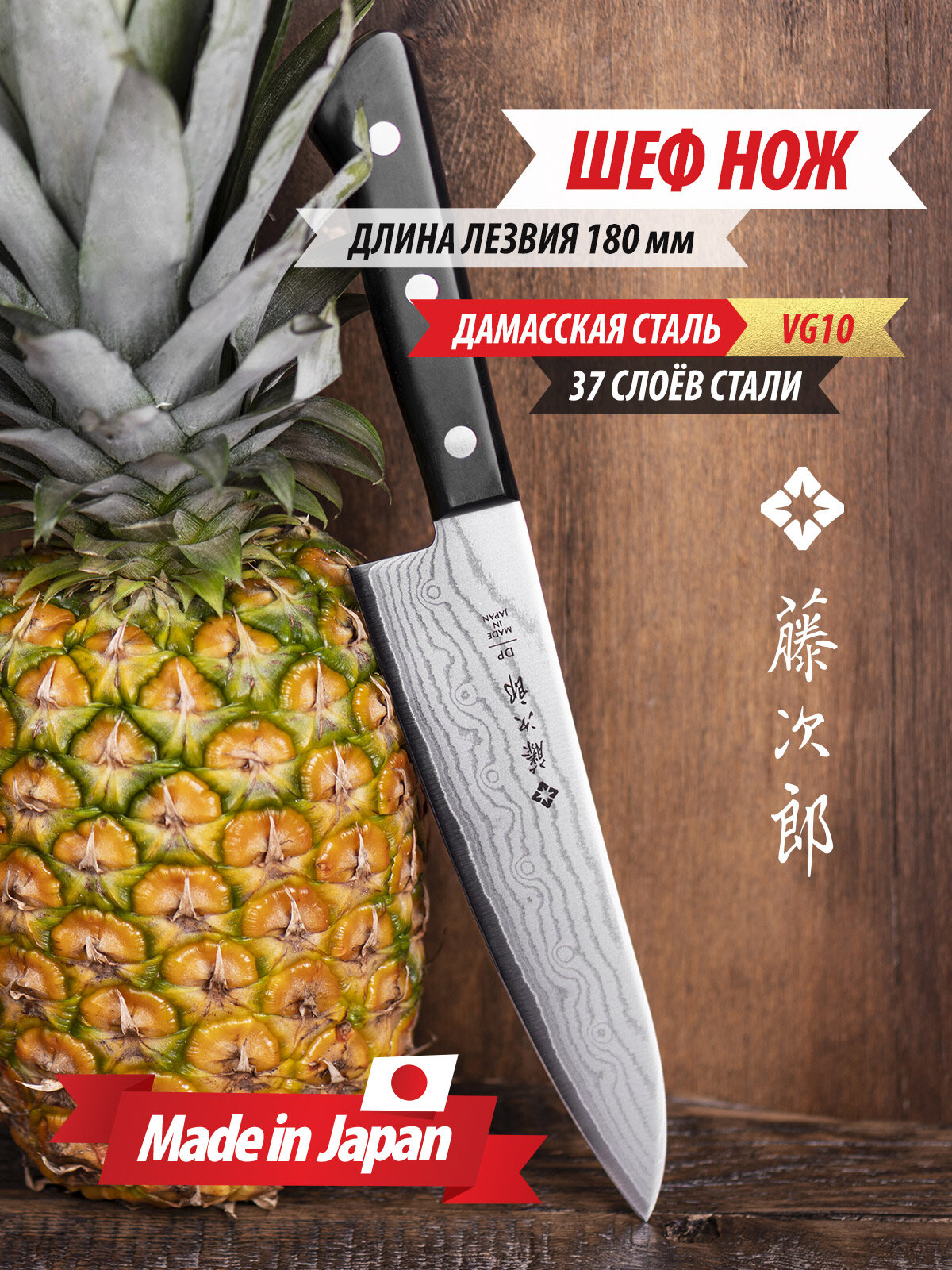 Нож Кухонный Шеф TOJIRO (F-332), длина лезвия 18 см, сталь VG-10, рукоять древесина, заточка #8000