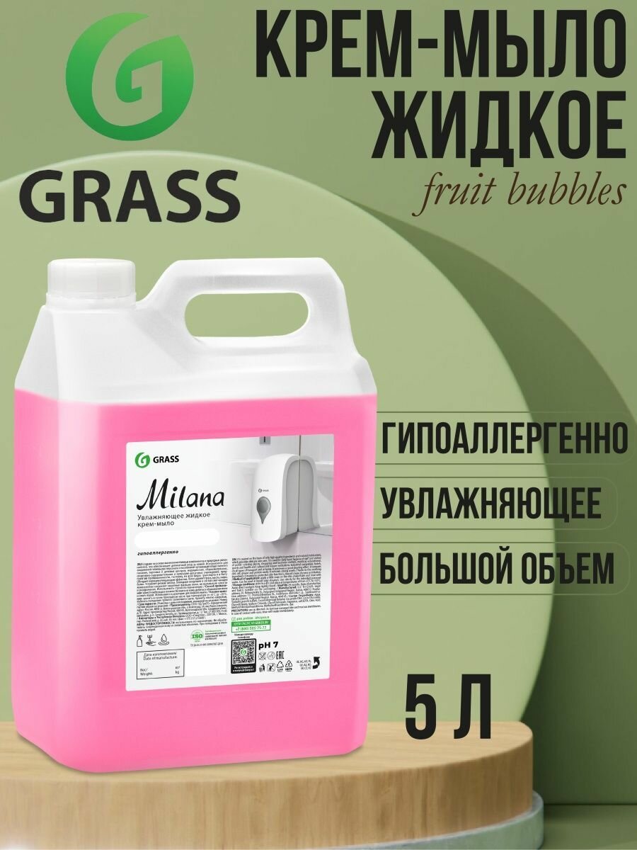 GRASS/ Жидкое мыло для рук MILANA Спелая Черешня, крем-мыло антибактериальное, 5 л.