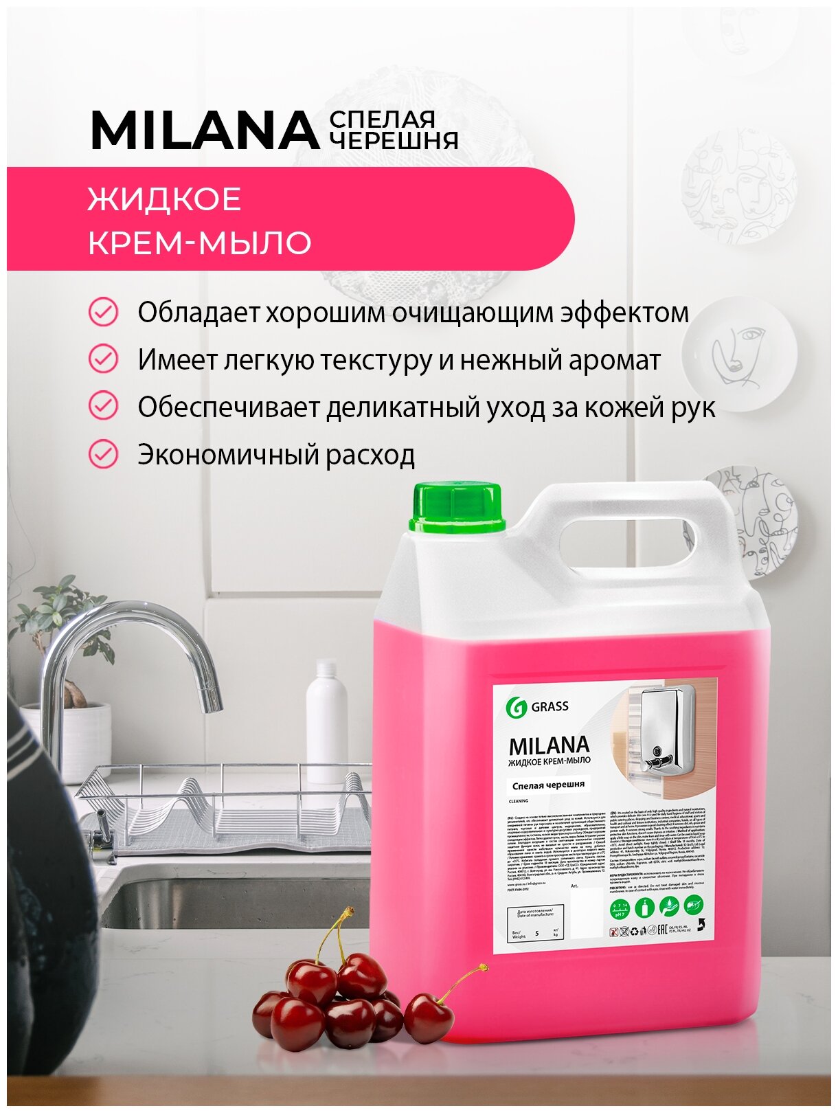 Жидкое крем-мыло Milana, спелая черешня, 5кг GRASS 1056923 .