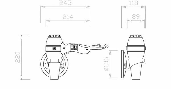 Nofer Фен HOTELline настенный с антивандальной защитой 1800 W черный/матовый, 02058.S