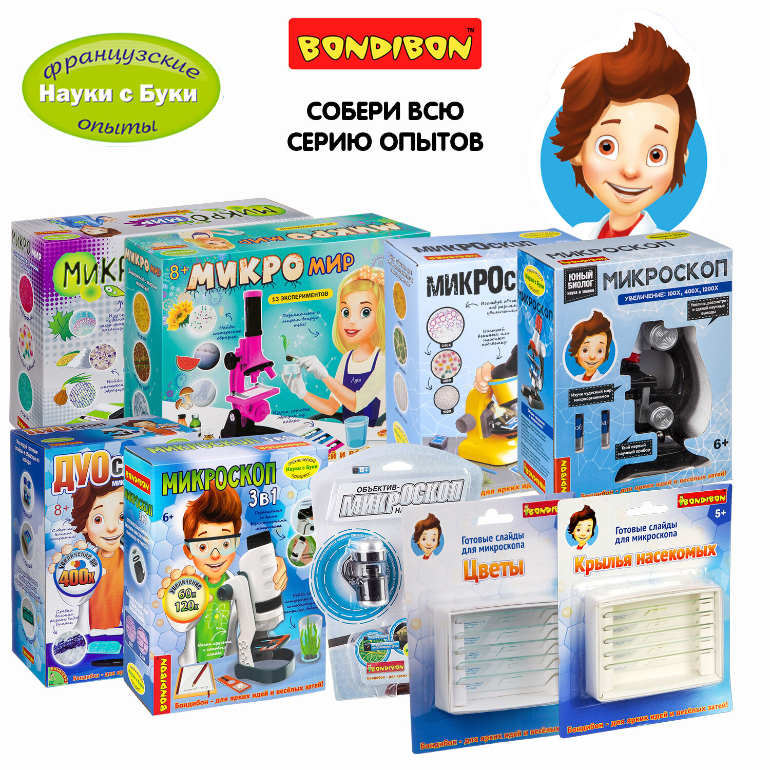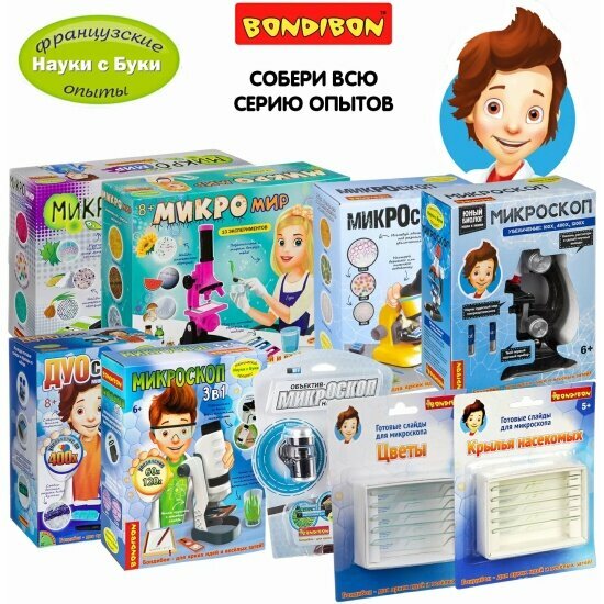 Французские опыты BONDIBON Науки с Буки Слайды для микроскопа насекомые ВВ2709