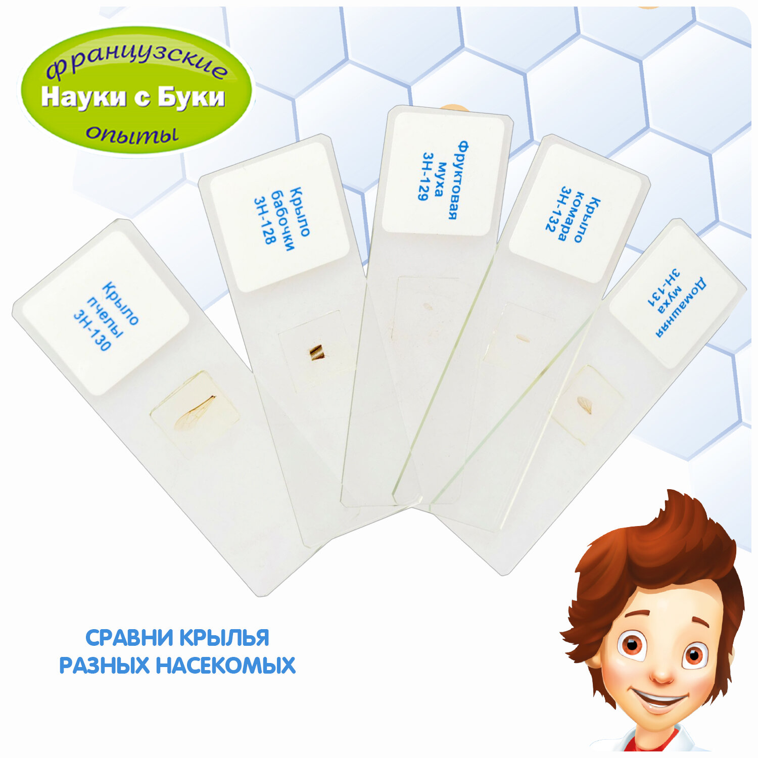 Купить Набор для опытов Bondibon Французские опыты Науки с Буки "Слайды для микроскопа насекомые" (ВВ2709)