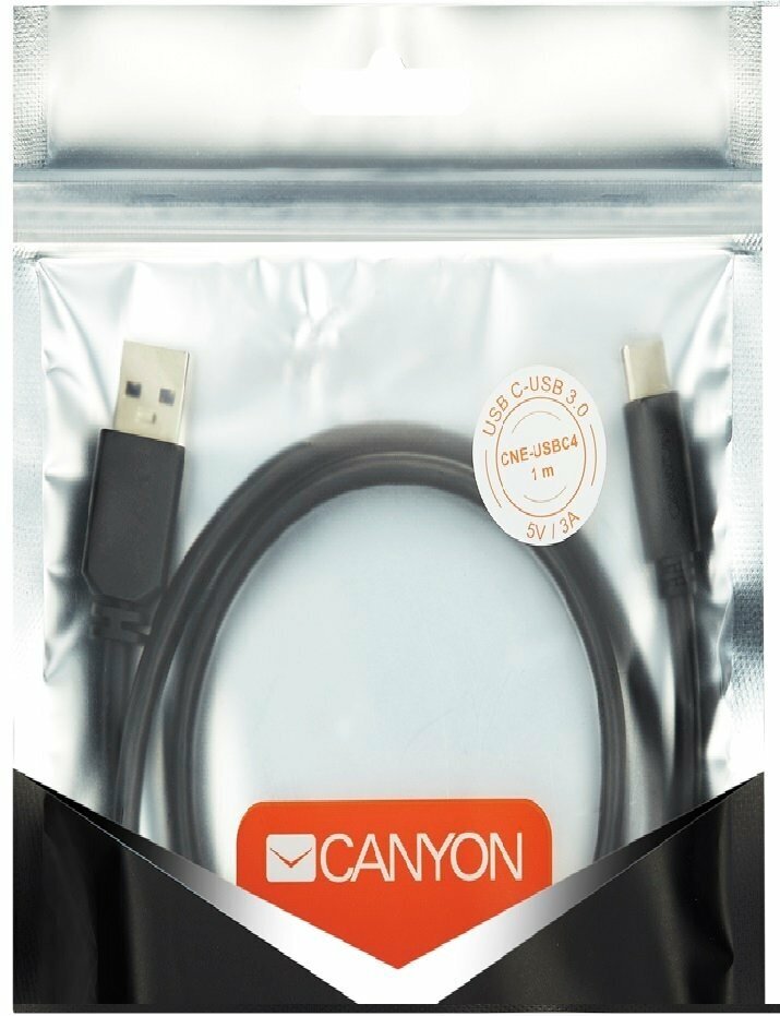 Кабель Canyon, USB Type-A - USB Type-C, 1А, 1.8м, Черный CNE-USBC2B