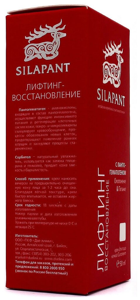 Силапант ночной крем для лица Лифтинг и восстановление, 50мл. Алтайская пантовая косметика