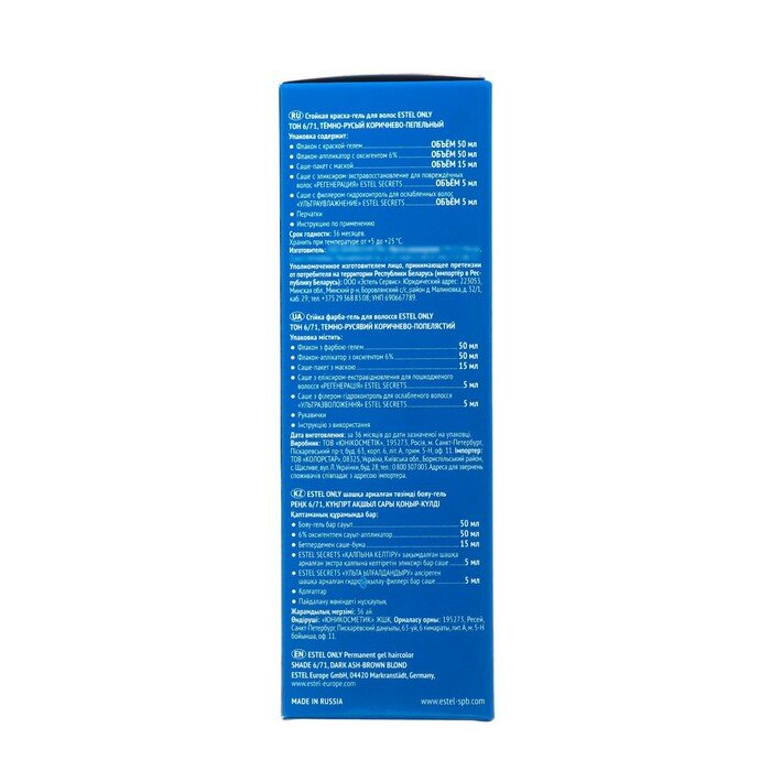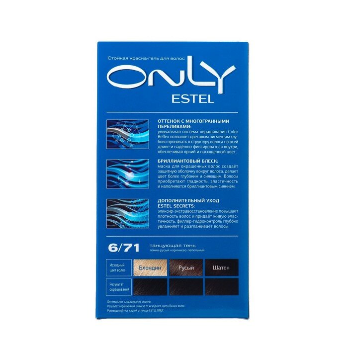 Краска-гель ONLY для окрашивания волос ESTEL 6.71 темно-русый коричнево-пепельный 50+50+25 мл