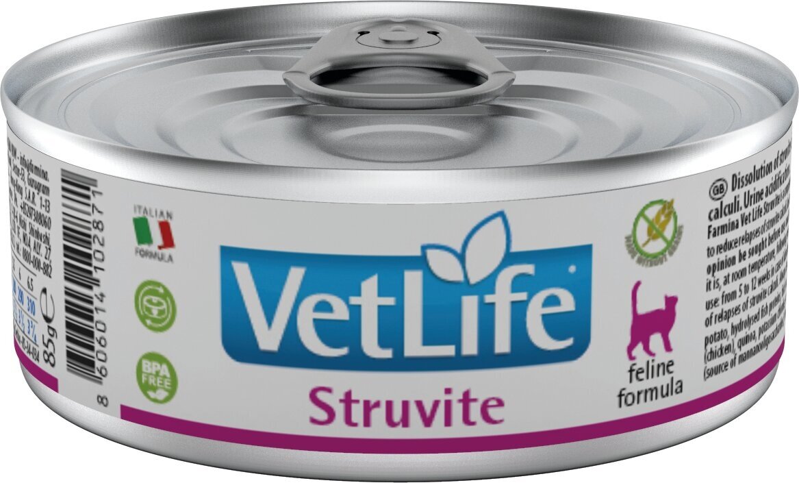 Консервы Farmina Vet Life Natural Diet Cat Struvite, диетический, для кошек при заболеваниях мочевыводящих путей/ струвитах, (85 гр.*12 шт.)