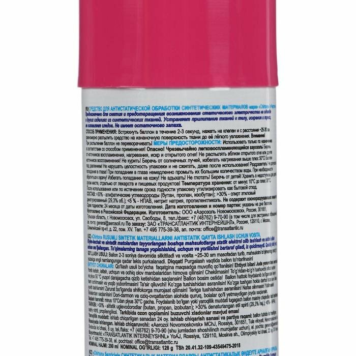 | Отзыв: | Хорошее распыление, небольшого количества хватает на эффект антистатичности. Даже после стирки платье не прилипает. |