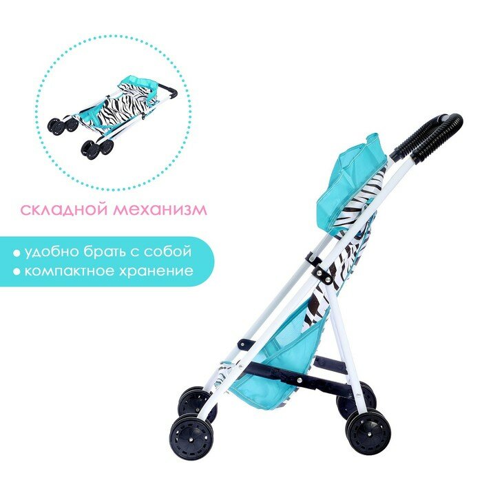 Коляска для куклы S+S Toys цвет мятный, зебра, Like in life (200100602) интересное: