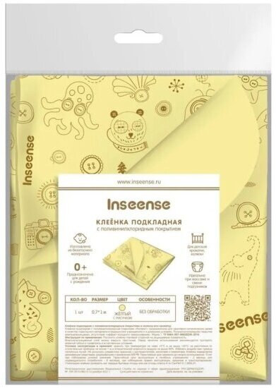 Клеёнка подкладная INSEENSE без тесьмы желтый с рисунком 70х100 см интересное: