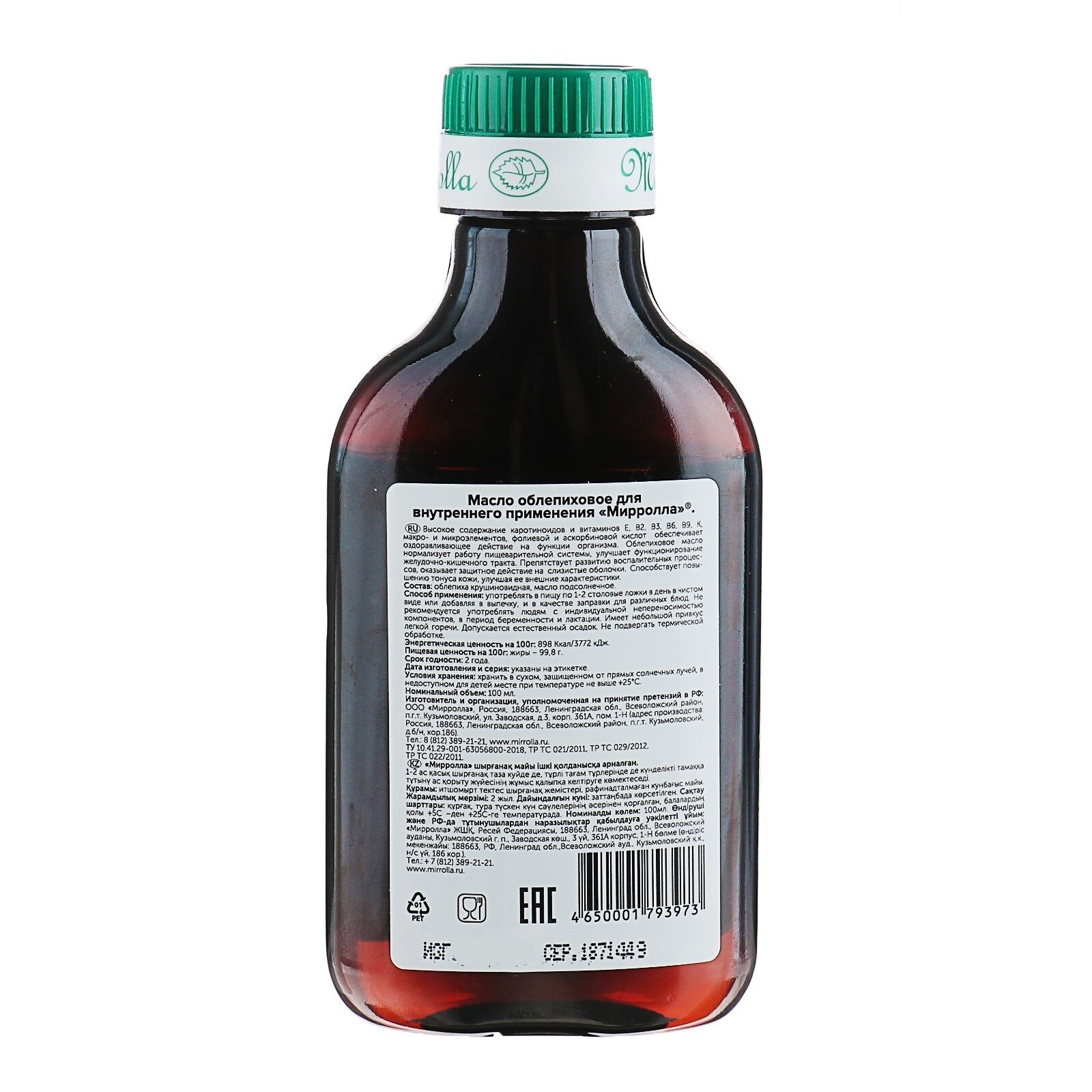 Масло облепиховое пищевое Mirrolla 100 мл. 4241254