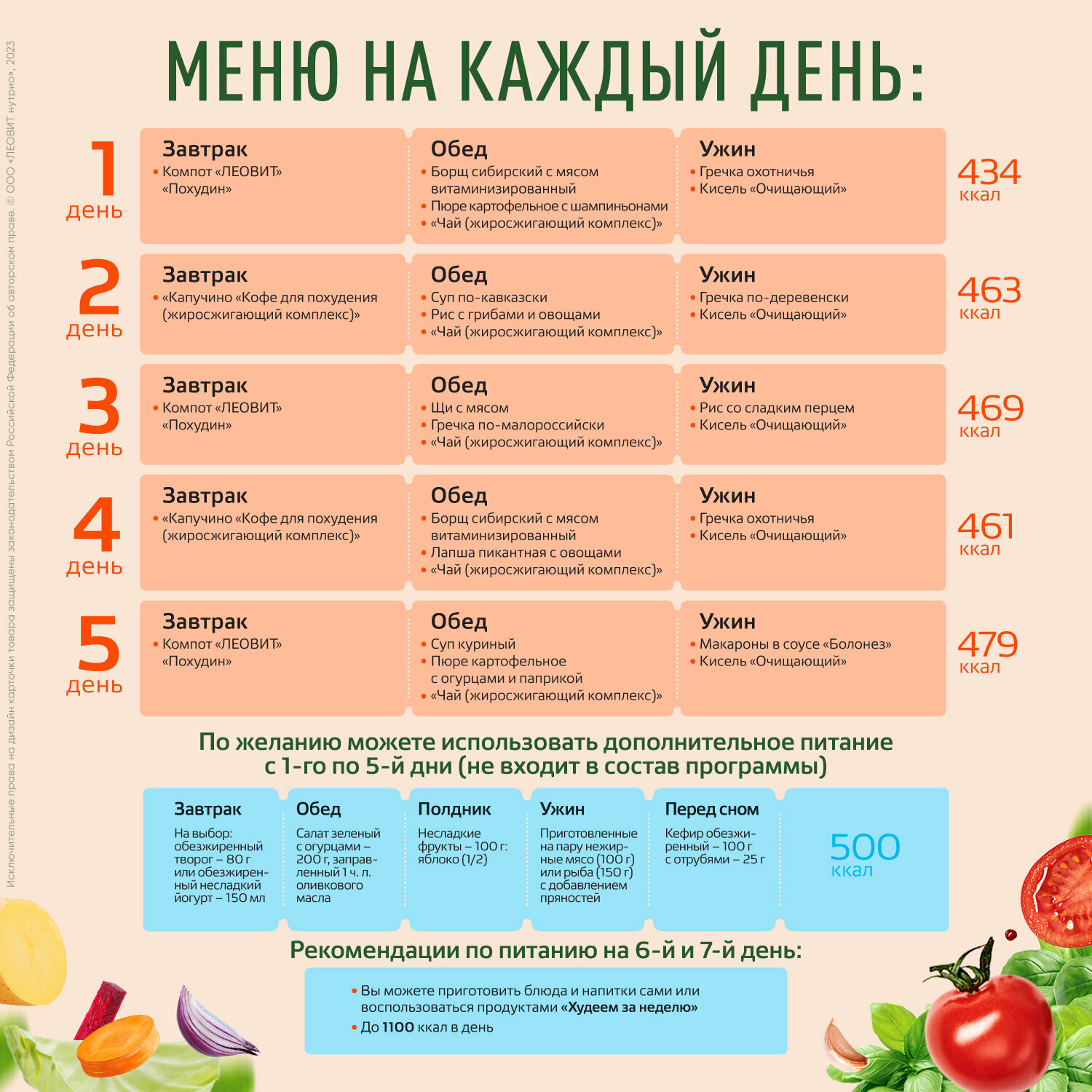 Худеем за неделю леовит Традиционное меню с мясом. Кейс