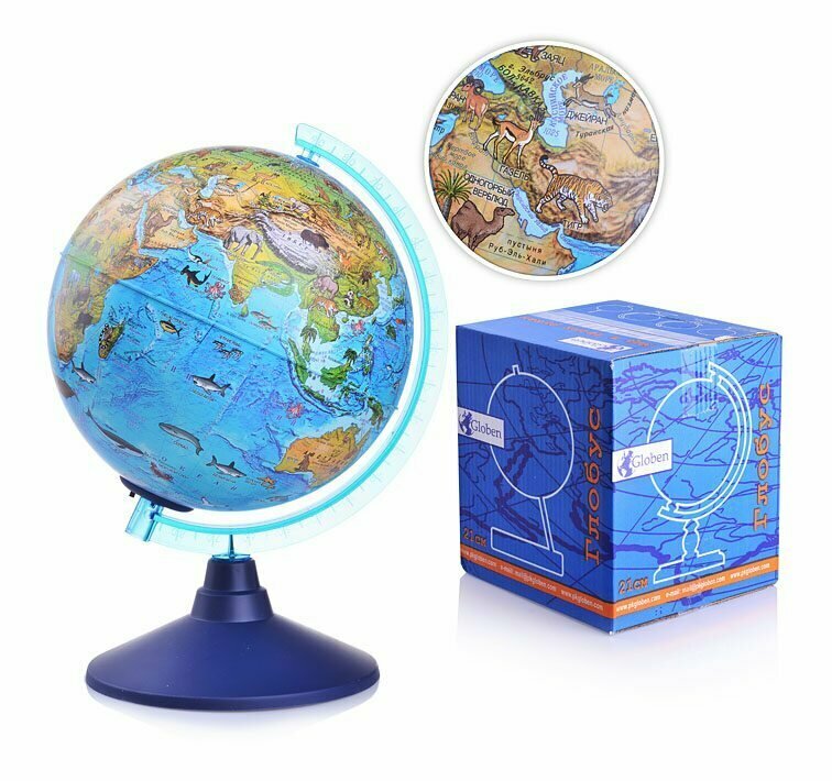 | Плюсы: | Хороший глобус. При размере 32 см, все буквы читаемы. |