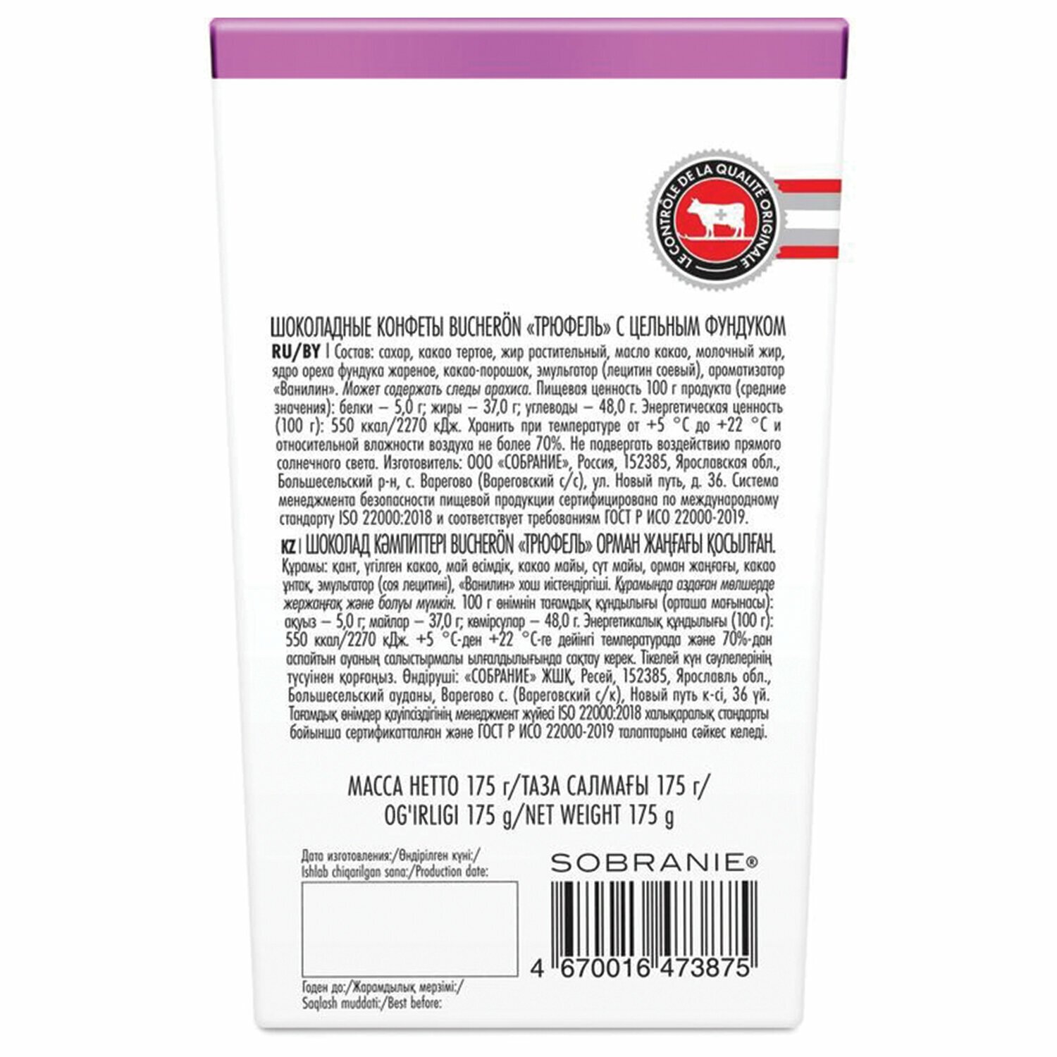 Набор конфет Bucheron Трюфель с цельным фундуком, 175 г интересное: