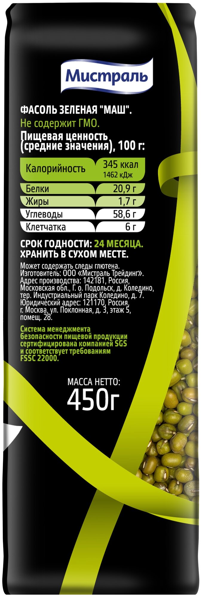 Фасоль мистраль Маш зеленая 450г интересное: