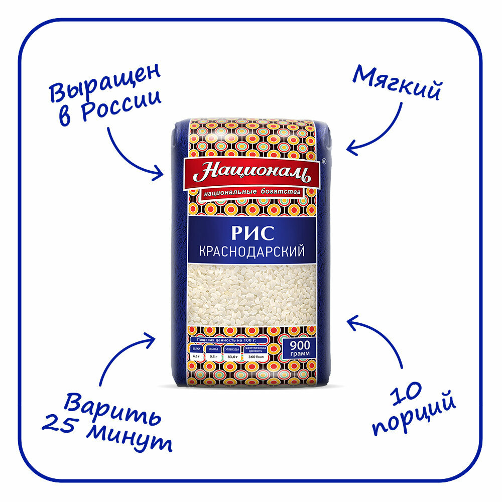 Рис Националь Краснодар Краснодарский белый круглозерный, 900 г