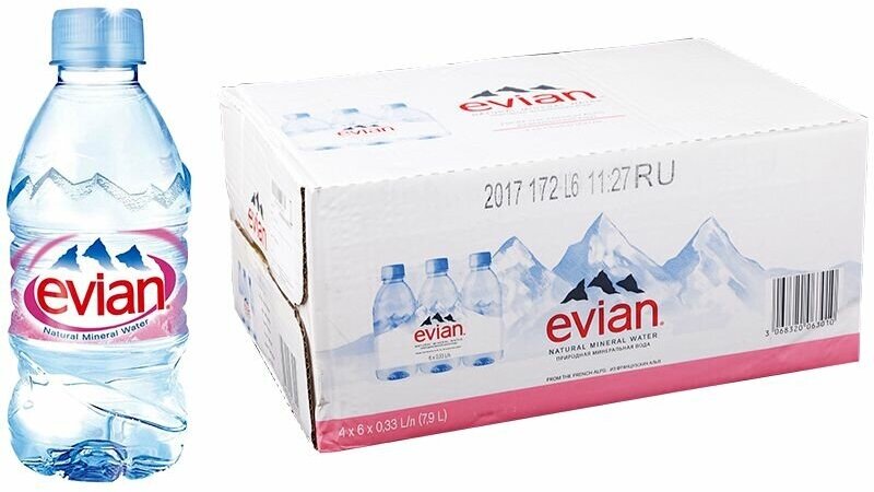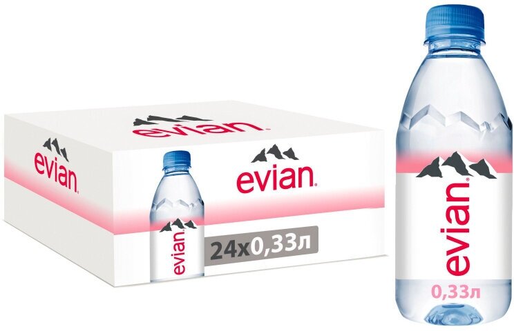 Вода Evian престиж / Эвиан 0.33 литра, без газа, пэт, 24 шт. в уп.