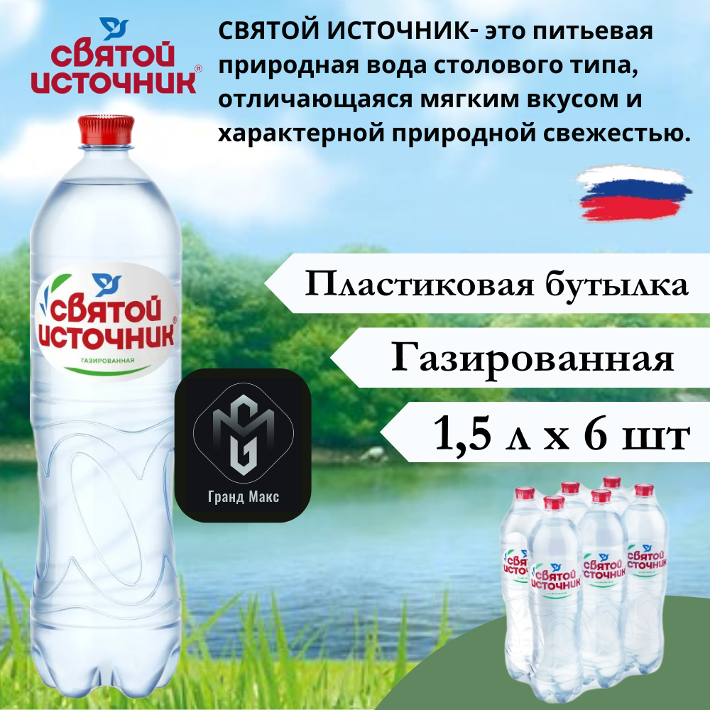 Вода природная питьевая газированная "Святой источник" 1,5 л. ПЭТ (6 штук)