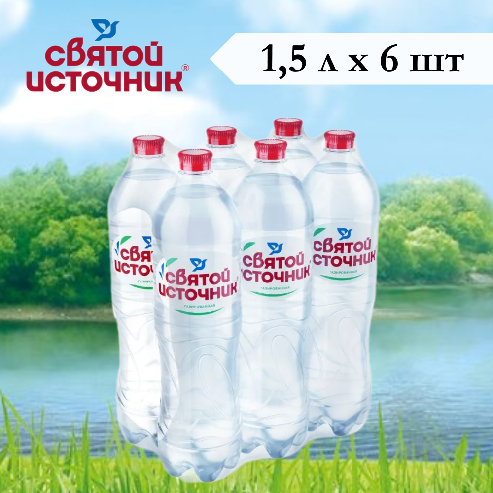 Вода питьевая Святой Источник газированная, ПЭТ 1.5 л (6 штук)