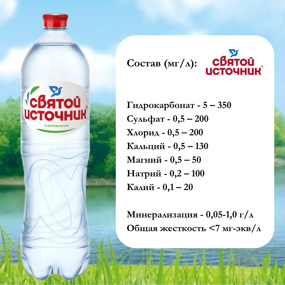 Вода питьевая Святой Источник газированная, ПЭТ, 1.5 л