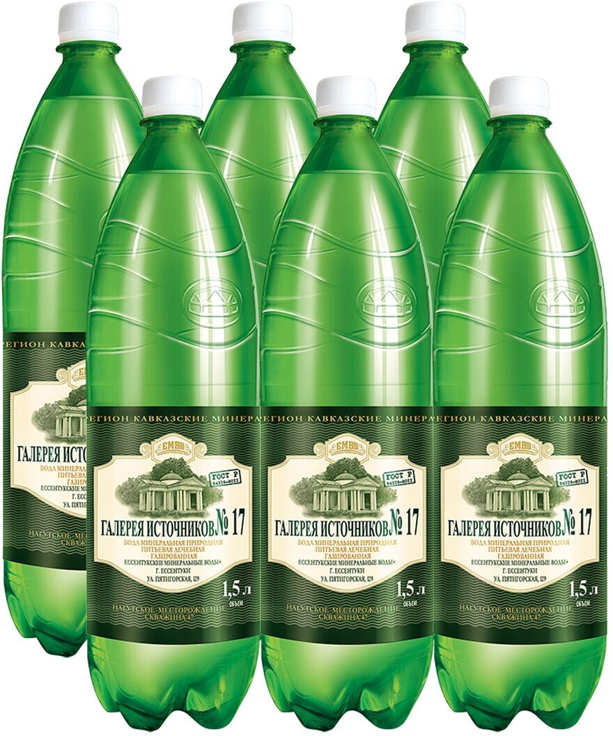 Вода минеральная Ессентуки №17, 6 шт. по 1,5л, газированная, пэт/ Вода минеральная природная лечебно-столовая питьевая газированная оптом