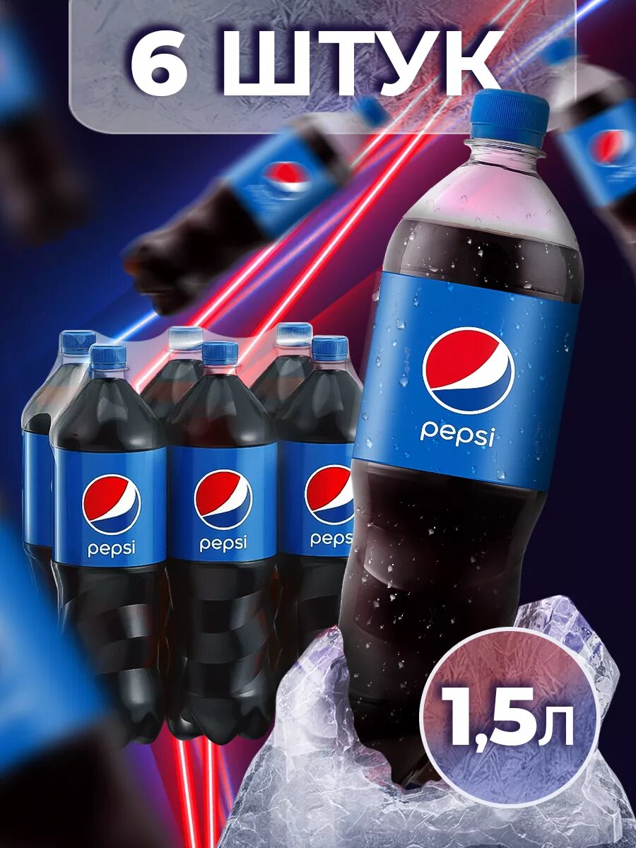 Газированный напиток Pepsi Cola, 1.5 л, пластиковая бутылка, 6 шт.