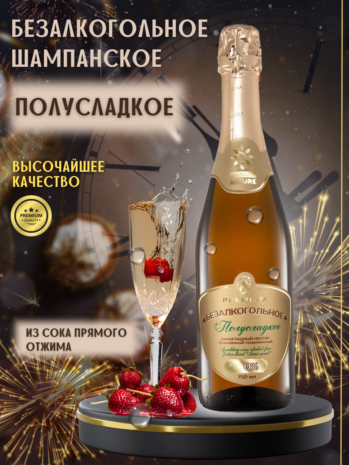Absolute Nature Безалкогольное шампанское полусладкое, 750 мл интересное: