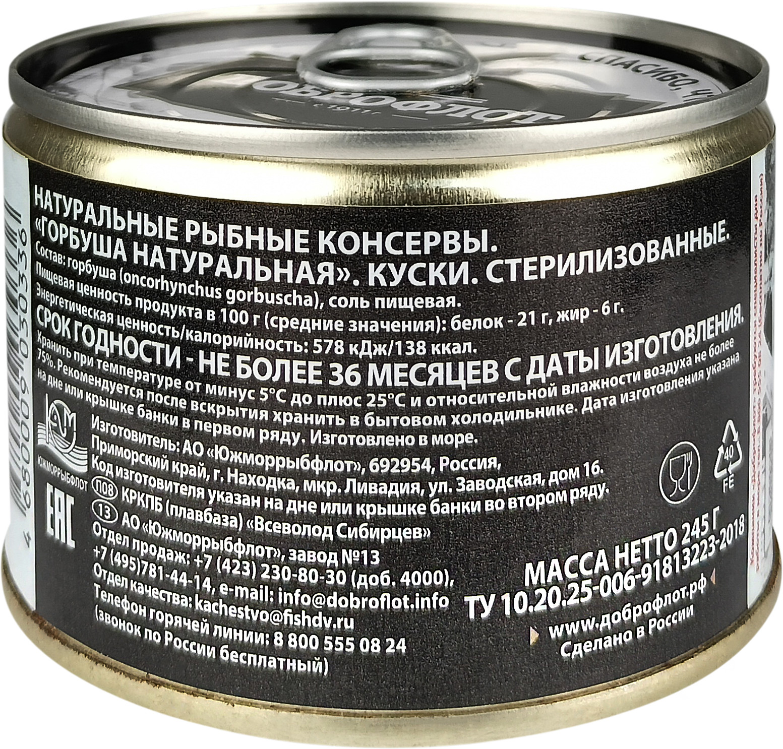 СохранитьГорбуша Доброфлот натуральная 245г интересное:
