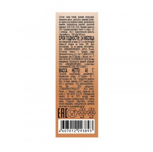 Посыпка кондитерская "Вермишель золотая" С.Пудовъ, 40 г