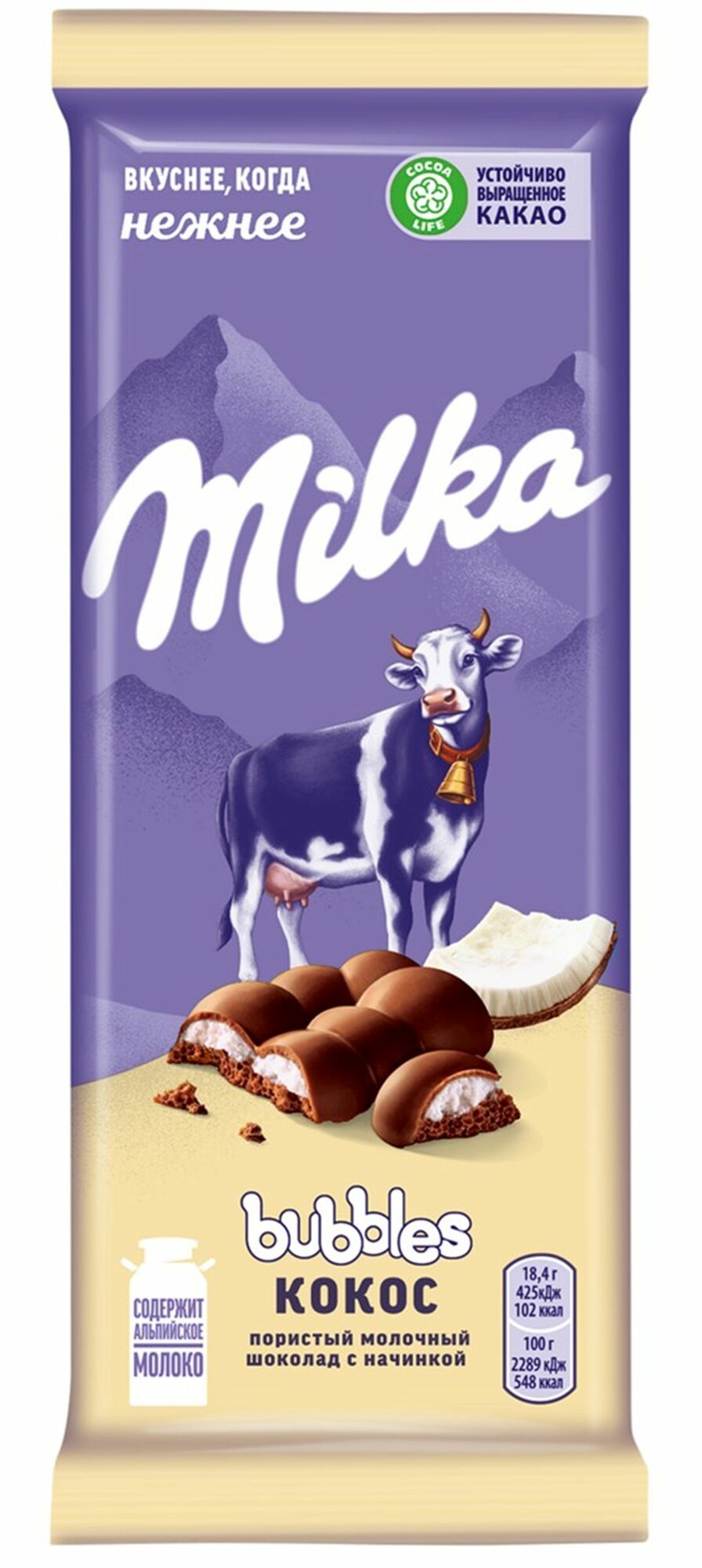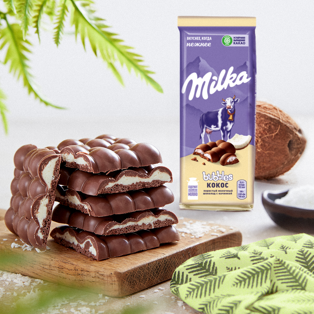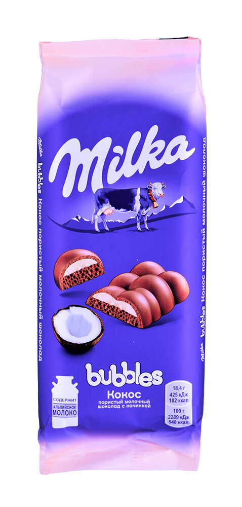Шоколад Milka молочный пористый с кокоовой начинкой 92г интересное: