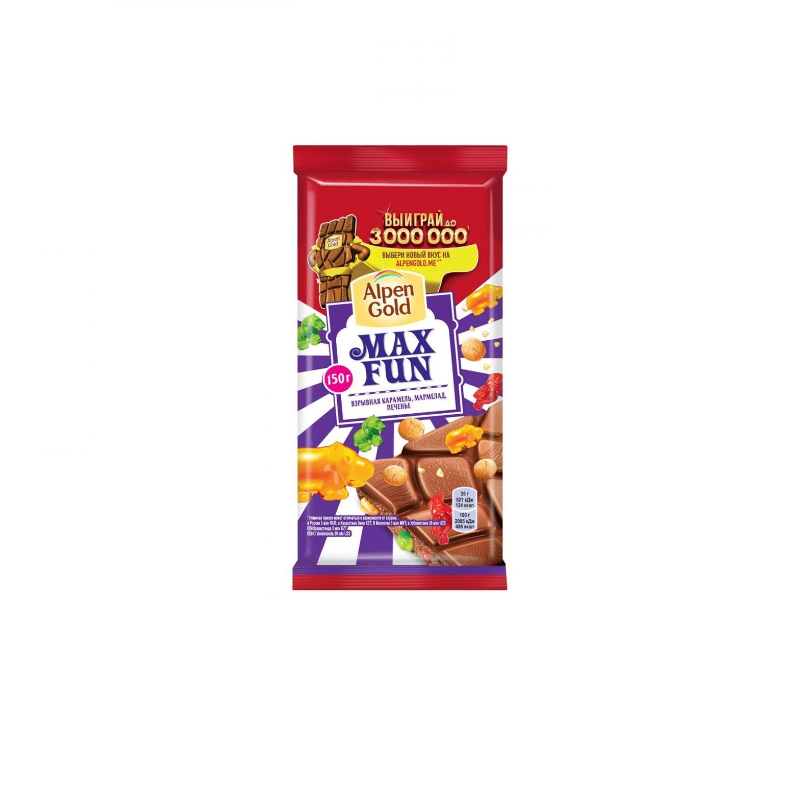 Шоколад Alpen Gold Max Fun молочный со взрывной карамелью мармеладом и печеньем, 150г