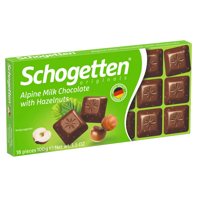 Шоколад Schogetten молочный альпийский с фундуком 100 г (MILK CHOCOLATE WITH HAZELNUTS)